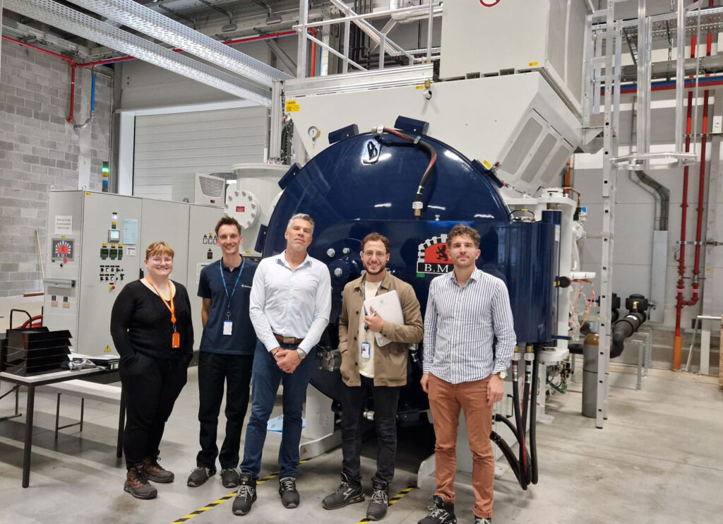 The firm’s “Safran Blades” division recently commissioned a brand new facility in Belgium which includes the first of two vacuum furnaces. Provided by “BMI” of France the company recently delivered and commissioned a Model B55T vacuum furnace which is designed for the heat treatment of turbine blades. One of the features of the furnace is an energy optimization system which will contribute to reduced energy consumption. A second identical furnace will be provided to this location in 2026. The first photo shows the installed furnace along with part of the “Safran” team alongside two individuals from “BMI”