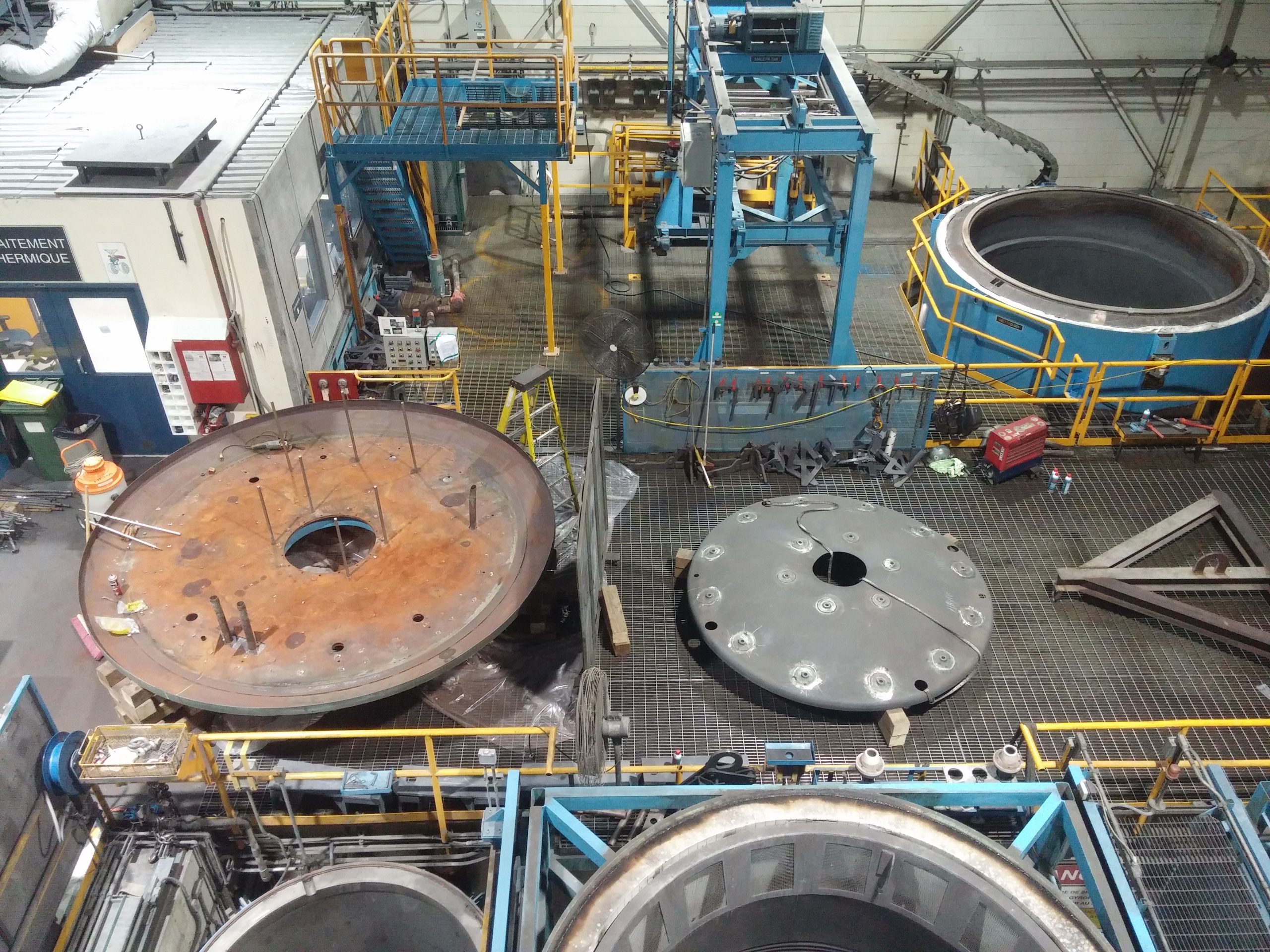 In this photo we see the heat treat department at a “Safran” facility in Mirabel, Quebec, Canada which produces landing gear. What we see here is a pit carburizing furnace provided by a UK based furnace builder.