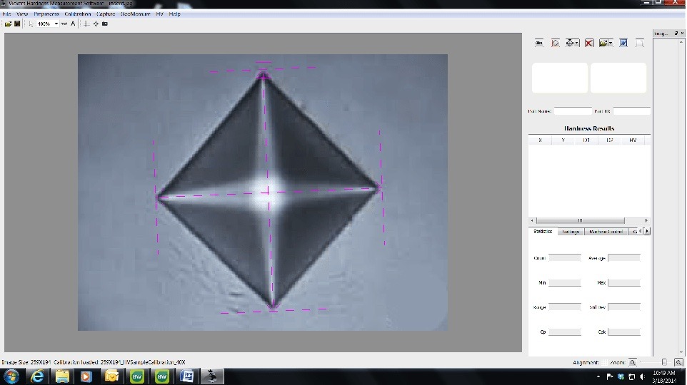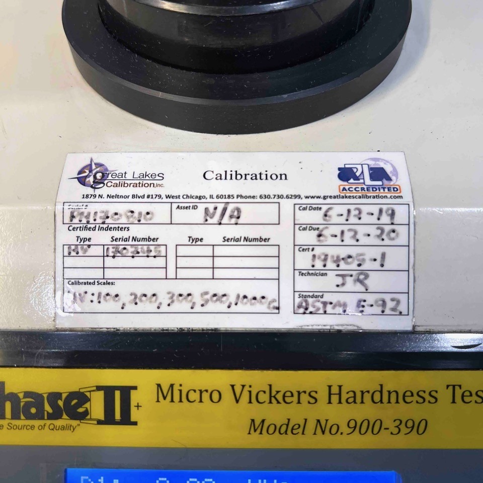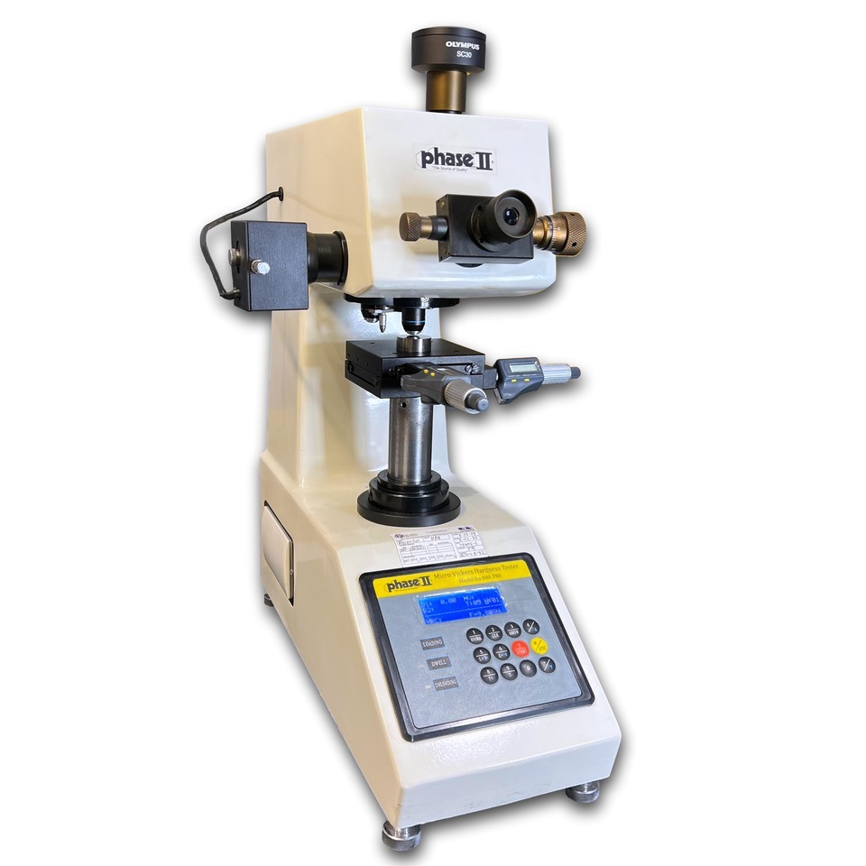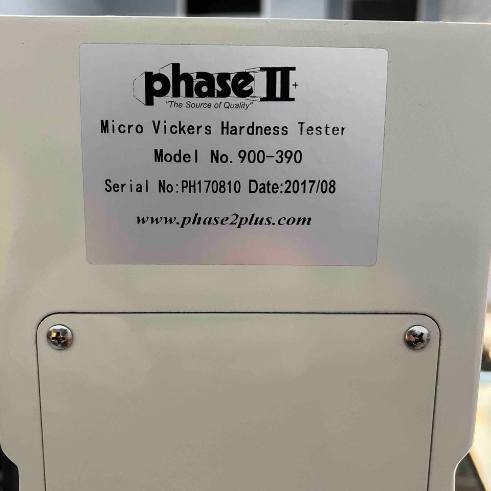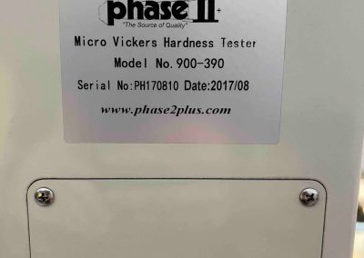 This is a 2017 Model, in excellent condition. It is equipped with a Vickers indenter and 10x, 40x objective lenses, and the Phase-II Measurement Software Package with Hardness Software Camera Pack. This software has automatic indent reading.