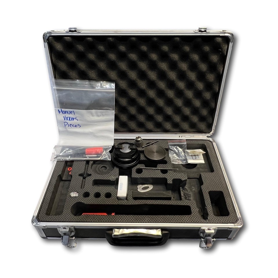 Wide range of test forces:: 10gf, 25gf, 50gf, 100gf, 200gf, 300gf, 500gf, 1000gf. Manual 3-position turret. X-Y stage with digital stage micrometers. Instruction manual, Tools & all original accessories in case.