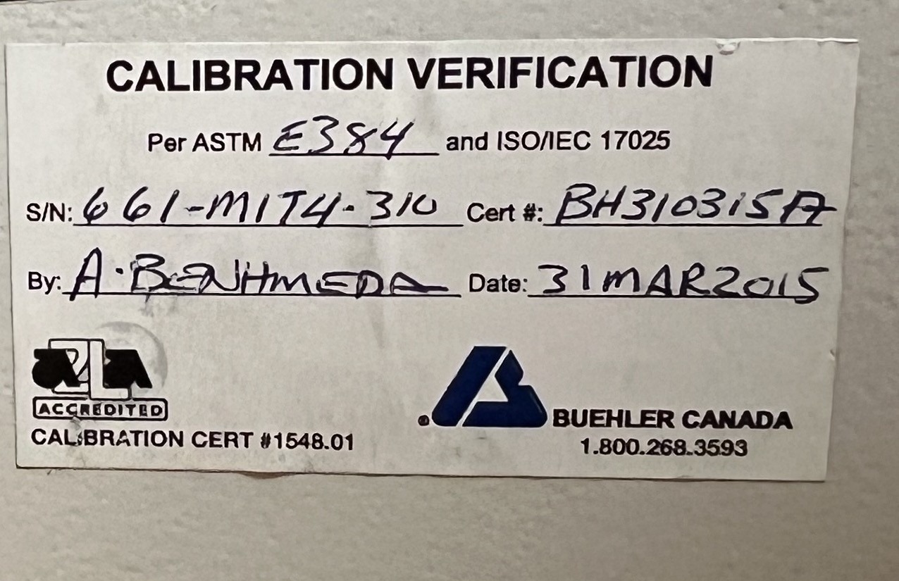 Comes with cord-set, case with all accessories/tools, dust cover and a CD copy of Buehler Omnimet Image Analysis Software. 30 day warranty. 1x120V/60Hz [INV 310]