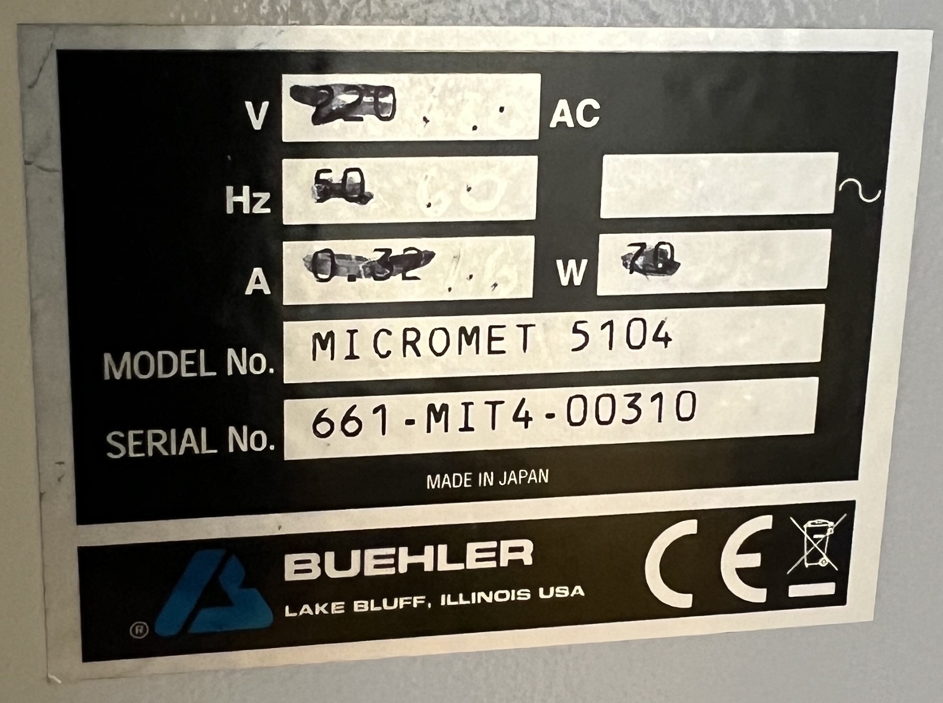 Item # L194 Buehler Micromet 5104 Microhardness Tester