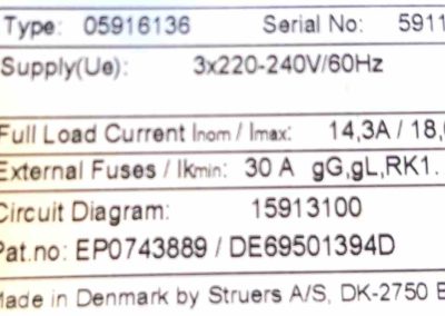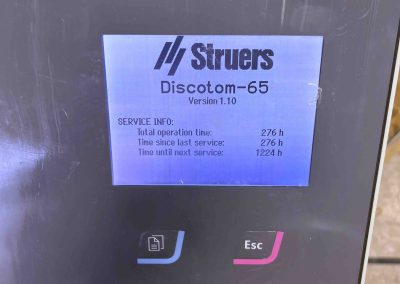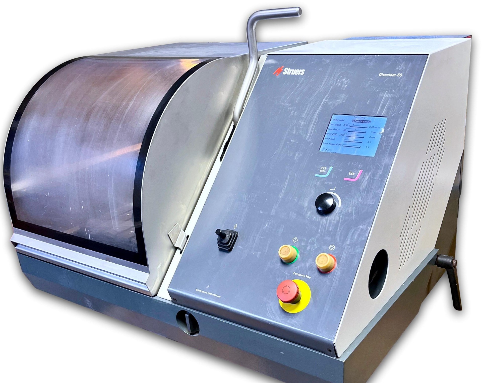This 2009 Struers Discotom-65 variable speed 12” automatic abrasive saw is refurbished and in good condition – it only has 276 lifetime hours on it.
