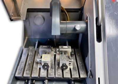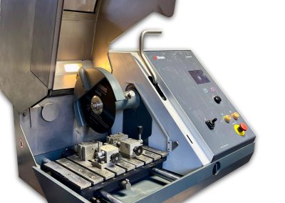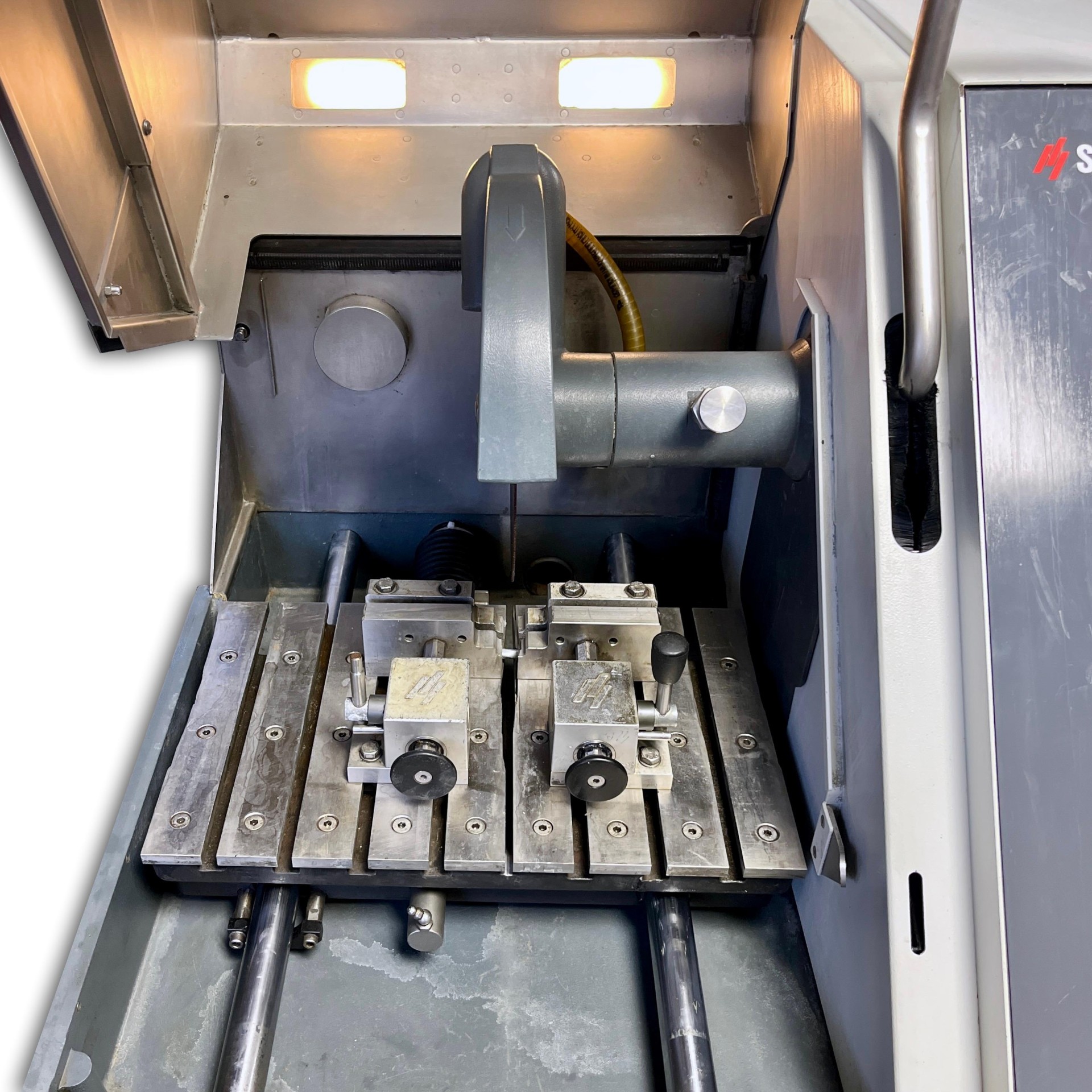 The Discotom-65 has a very large chamber and cutting table, and a flap on the left side that can accommodate long parts out the side of the machine. Automatic Cutting is via the Y-table, with a large cutting stroke of 8” at variable feed speeds. The RPM’s are also variable, allowing cutting of many hardnesses of material with just one type of abrasive blade. There is also a manual cutting option included with a large cutting arm, giving you the most flexibility for your various applications. The new OEM value of this saw is about $50,000 USD, and we’re offering this complete package at $18,900 USD.