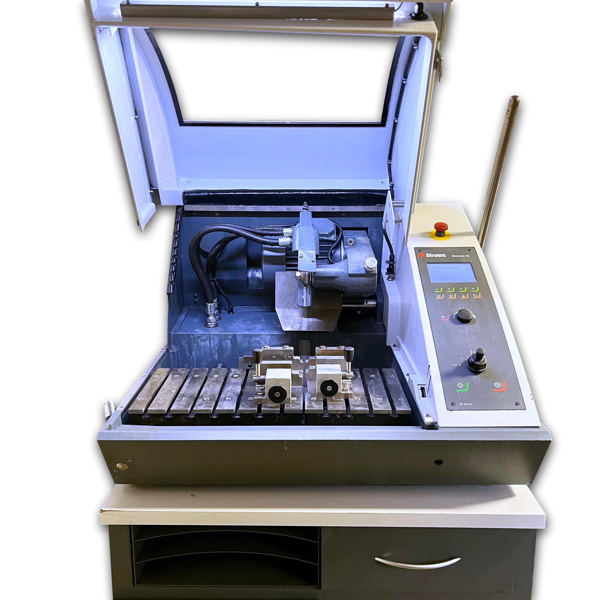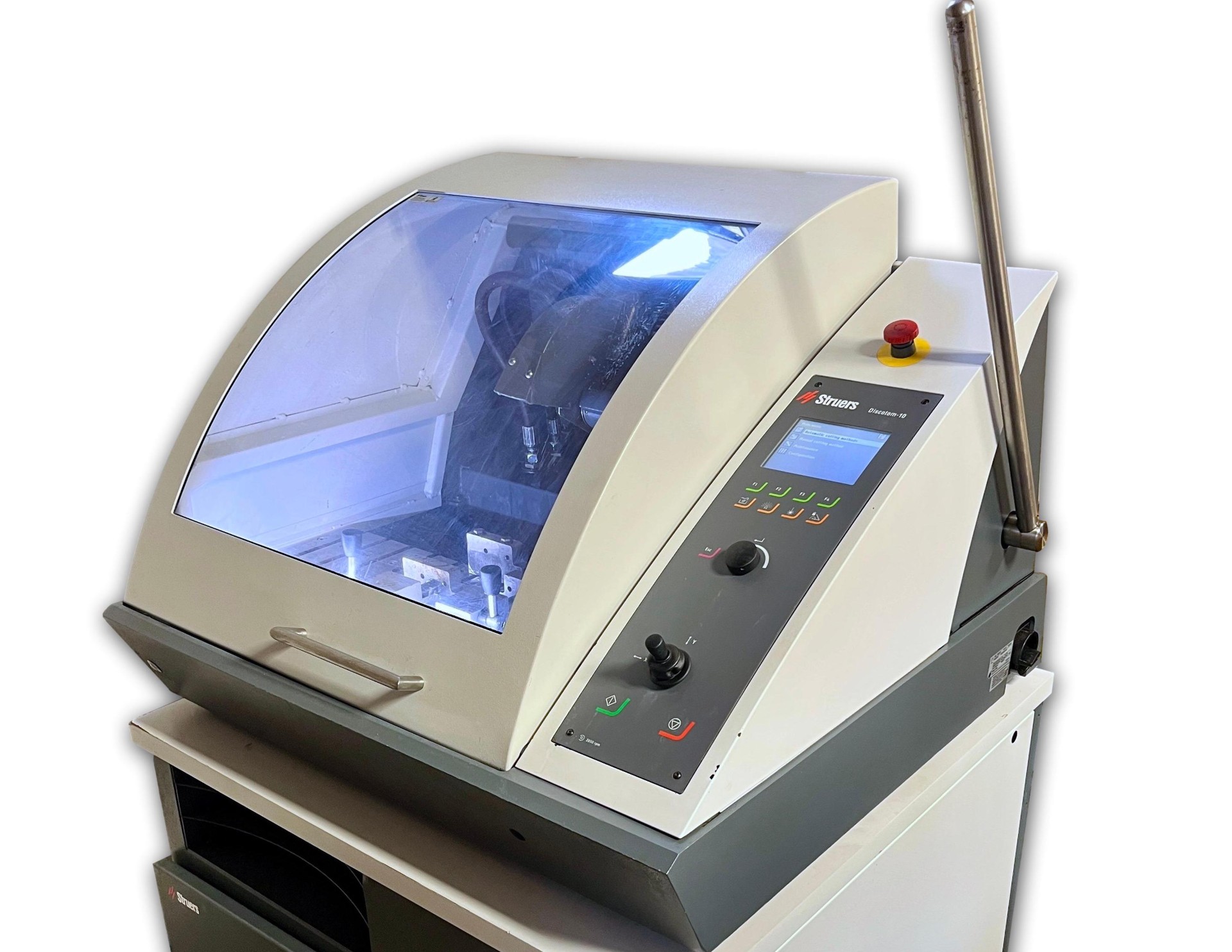 This Struers 2014 Discotom-10 is a current model automatic saw, refurbished, tested and ready to ship.