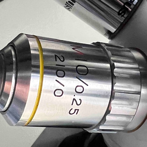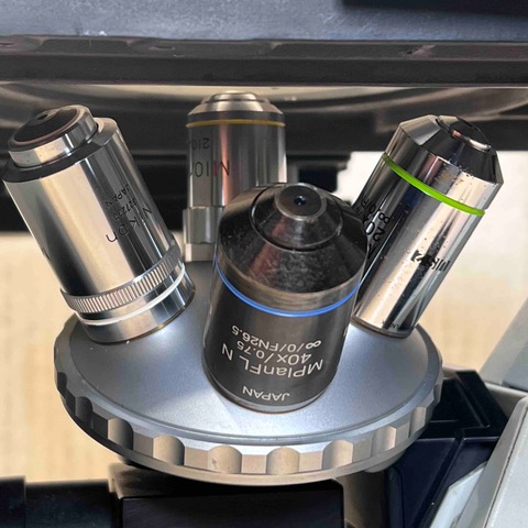 - 4 Position Turret Nosepiece with 10x, 20x, 40x, 100x Objective Lenses