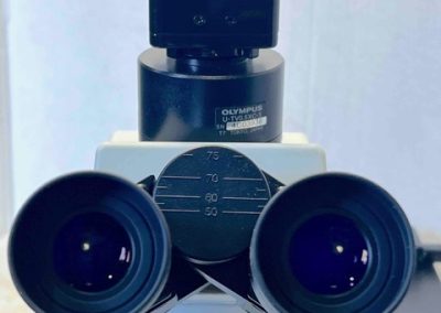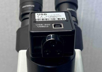 This Olympus GX41F Inverted Compound Microscope is professionally cleaned and tested, equipped with 5.0MP digital USB camera. It is in very good condition. Outfitted with: