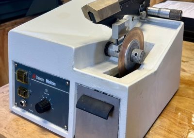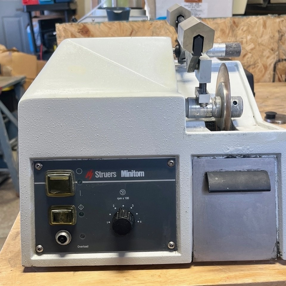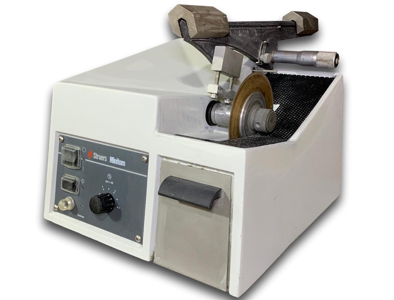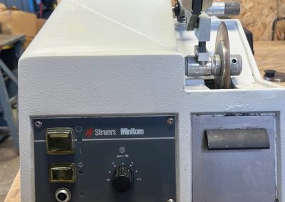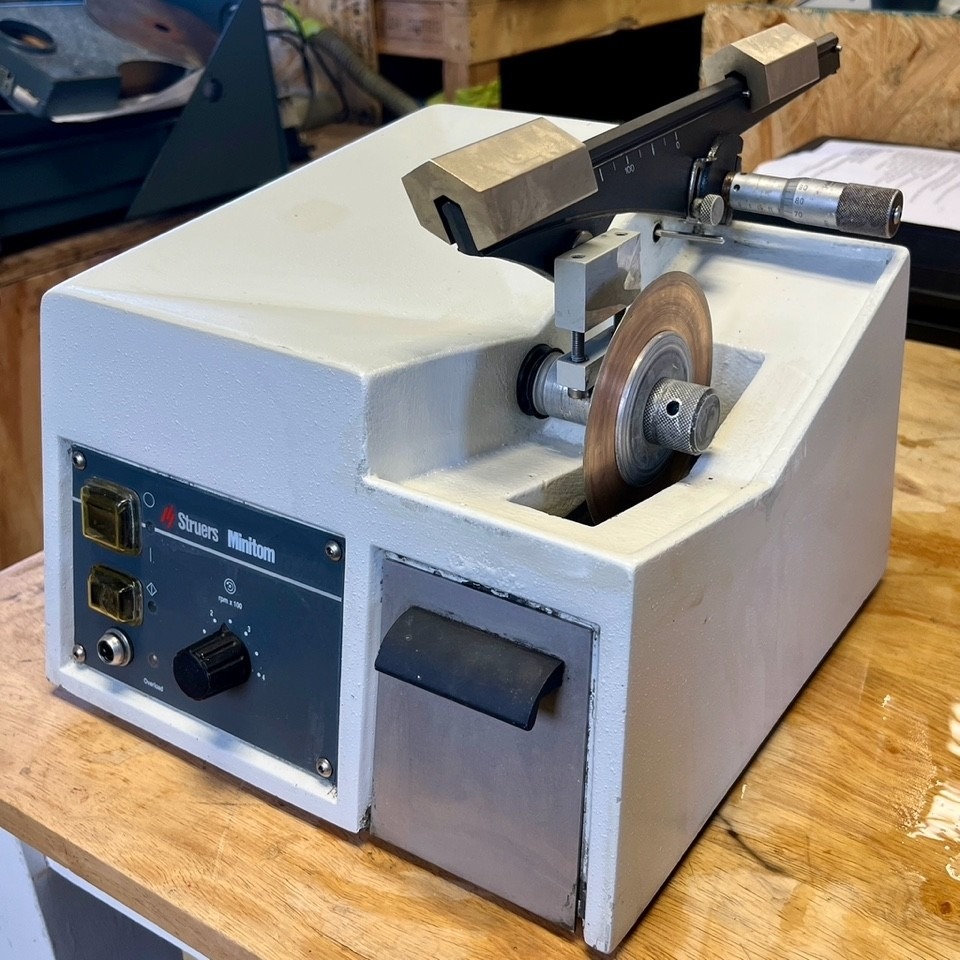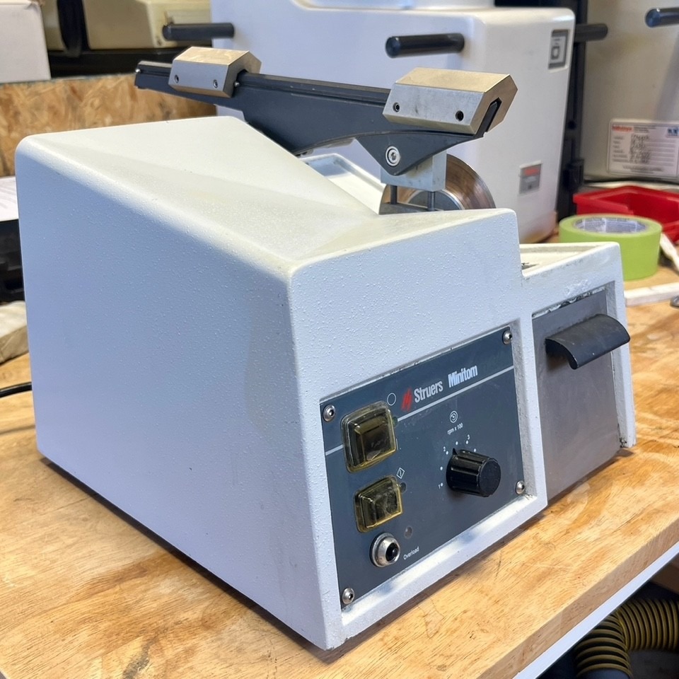 Excellent condition unit, tested and cleaned and ready to ship. Priced at a fraction of the new price of this current-generation saw. Minitom is a small, low-speed, automatic precision cutting machine for sectioning delicate materialographic workpieces that can’t tolerate the heat generated by high-speed cutting. Workpieces up to 30 x 40 mm