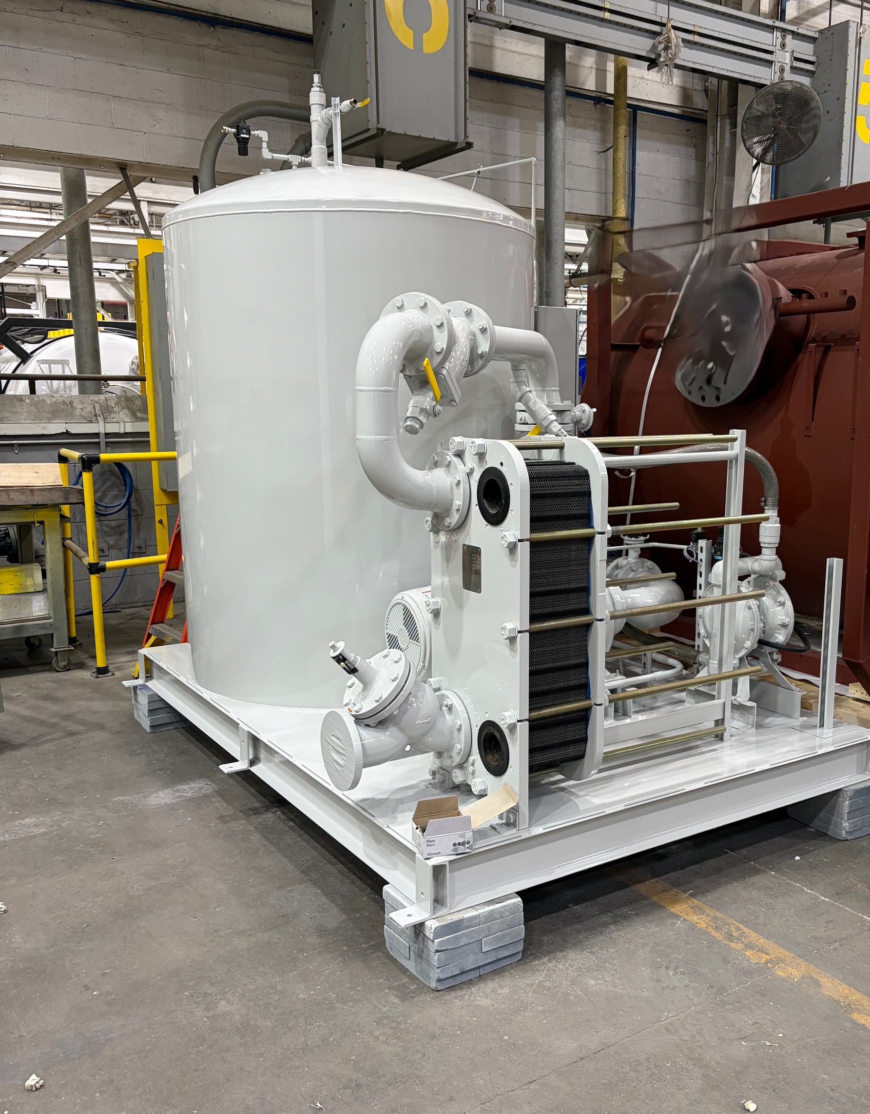 Manufactured by "Dry Coolers" of Michigan this is a closed loop cooling system designed for a vacuum furnace application. Model CSX-400-900-PHE-EDP-MP.
