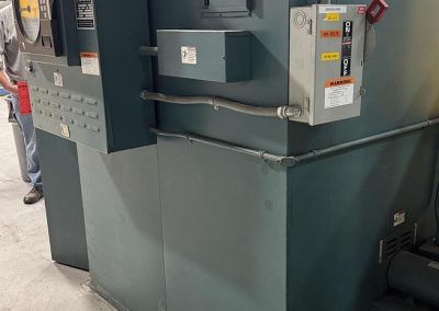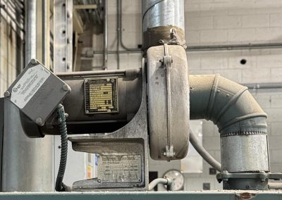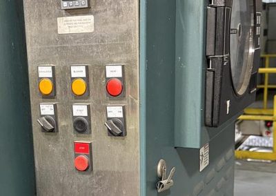 Double doors with ceramic fiber gasket, “Brixon” spring tension latches with aluminized steel interior and insulated floor. The floor has 2″ wide cart tracks on 24″ centers, a cart is supplied with this oven. The heating elements and fresh air inlet are located on the right-hand side behind the heated area. A direct driven circulating fan is mounted through the rear wall. Heated air is circulated in a horizontal pattern across the chamber. A powered exhauster is mounted on top of the oven. Oven will be tested prior to shipping.