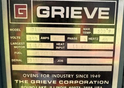 Manufactured by “Grieve” this is a 36″ Wide X 60″ High X 36″ Long, “TAH-500 Truck Oven”